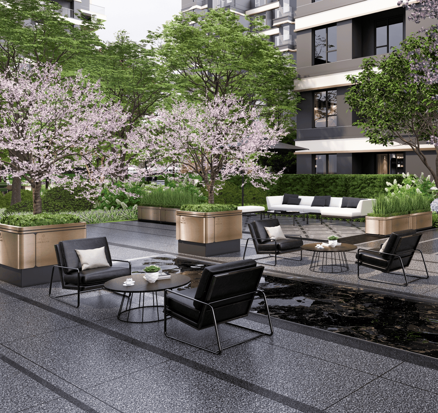园林规划传承古长安外市内坊款式,西连三桥商圈,使建建取天然深度对话。