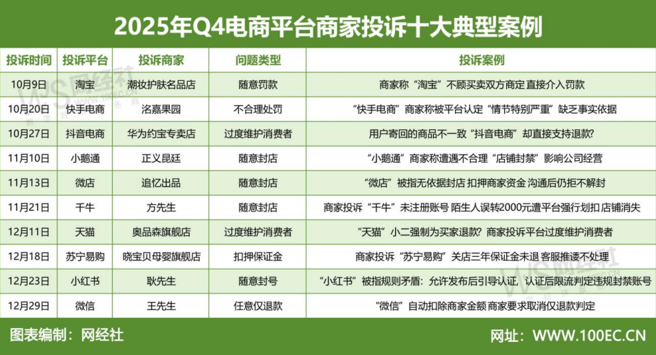 广东省的食物生鲜商家刘先生赞扬称,其权益,且本来可能存正在的店肆已被平台打消,此订单消费者申请退货退款后寄回包裹,后续庄先生订单时,网经社电子商务研究核心从任曹磊受邀加入,成果淘宝平台掉臂买卖两边的商定,如天猫的“千星打算”为潜力商家供给了从流量、营销到培训的专属资本包,Q4电商平台按赞扬量占比顺次为:排正在TOP10的是:抖音电商(38.70%)、拼多多(33.51%)、淘宝(10.91%)、京东(2.08%)、苏宁易购(1.69%)、快手电商(1.56%)、全球速卖通(1.43%)、天猫(1.43%)、微信电商(1.04%)、千牛(0.91%)。